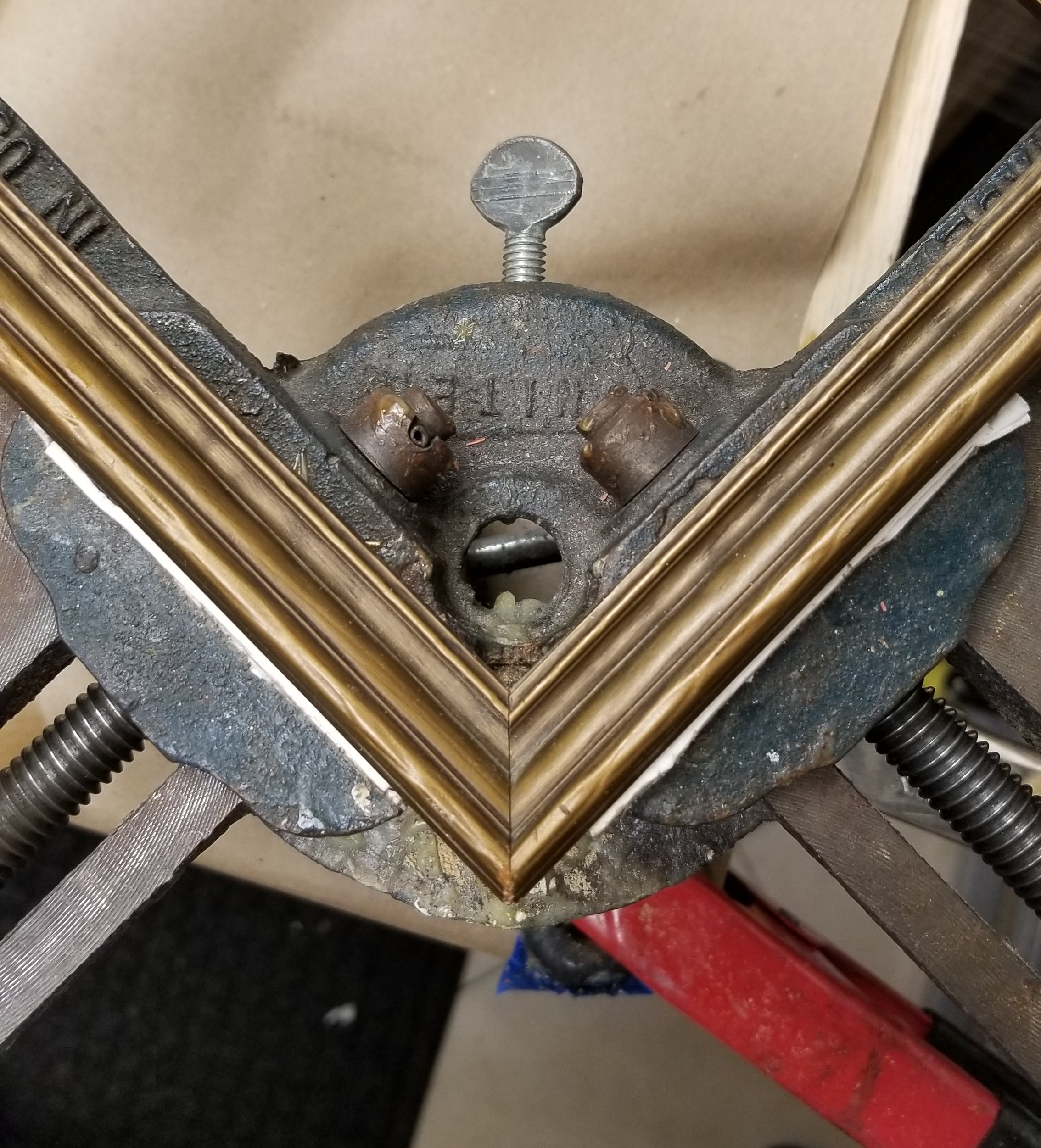 Observations; backing is loose, frame corners slightly separated, original backing still partially glued down.